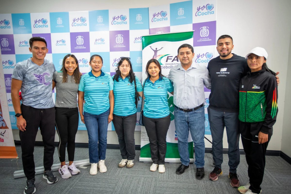 La conferencia de prensa contó con la participación de la Directora de Deportes del Municipio de Cochabamba, Carola Loma, y del Presidente de la Federación Atlética de Bolivia, Rufino Flores, además de entrenadores y atletas del equipo anfitrión.